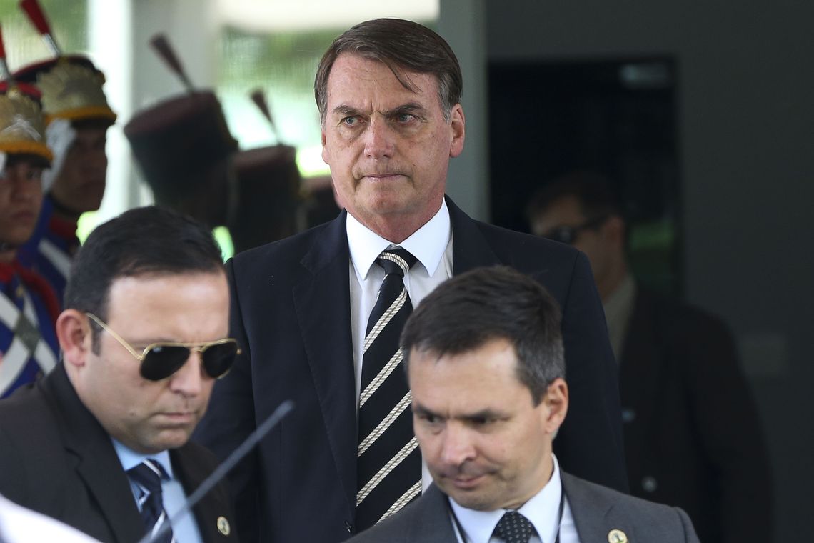 O Presidente Jair Bolsonaro deixa o Ministério da Defesa após almoço com ministros.