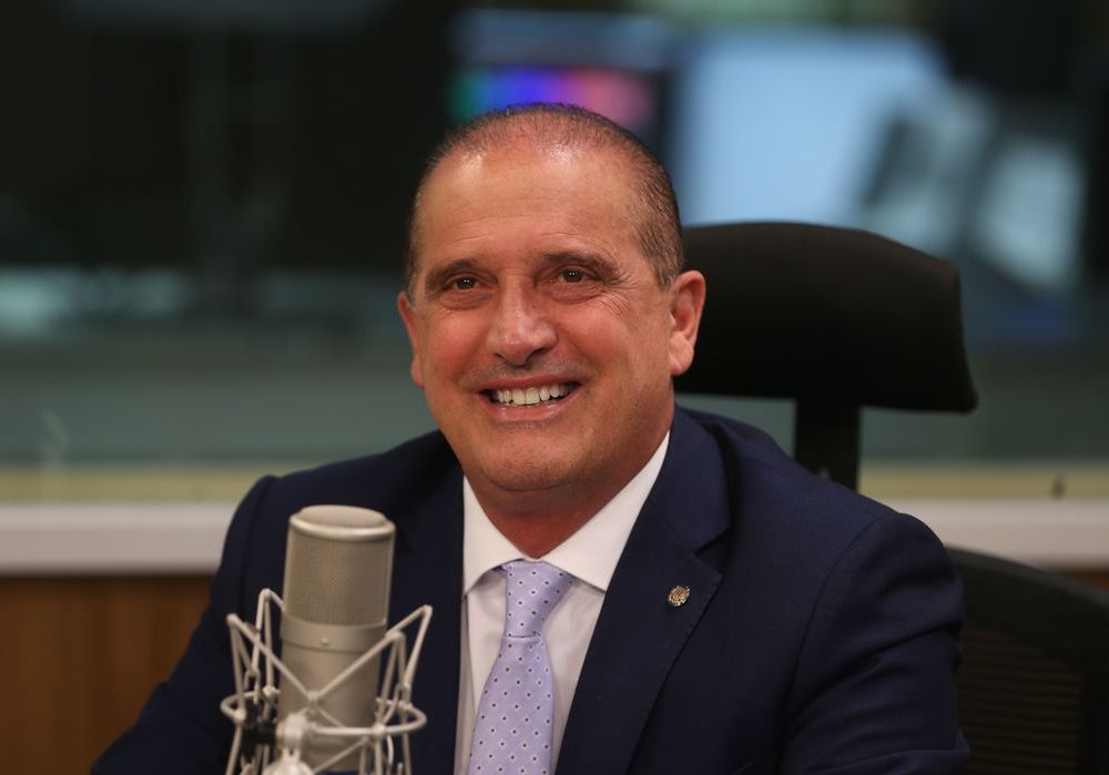 O ministro do Trabalho e Previdência, Onyx Lorenzoni , é entrevistado no programa A Voz do Brasil.
