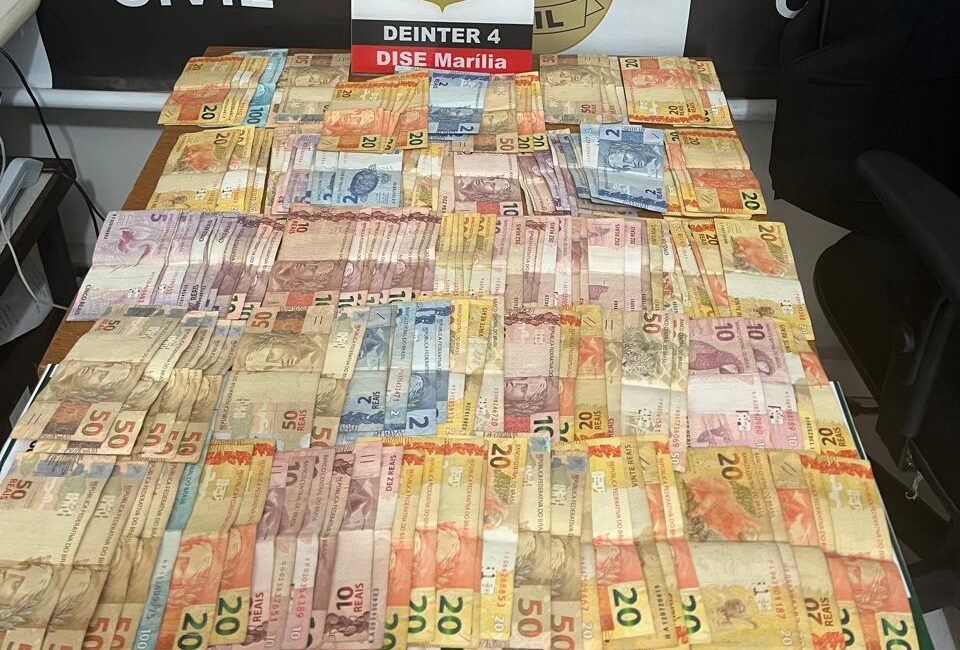 Dinheiro apreendido pela Polícia Civil em Marília (Foto: DIvulgação/Marília Notícia)