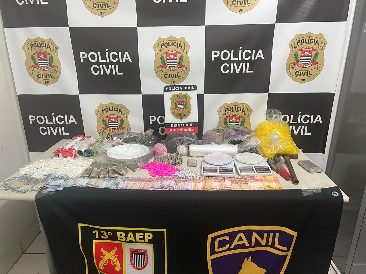 A Polícia Civil de Marília, durante a Operação Dionísio, deflagrada na manhã desta quinta-feira (27) e coordenada pela Delegacia de Investigações sobre Entorpecentes (Dise), implodiu um esquema regional de tráfico de drogas e prendeu 13 pessoas. Foram quatro meses de investigação e monitoramento de um grupo que distribuía entorpecentes em vários municípios no eixo Marília-Tupã.