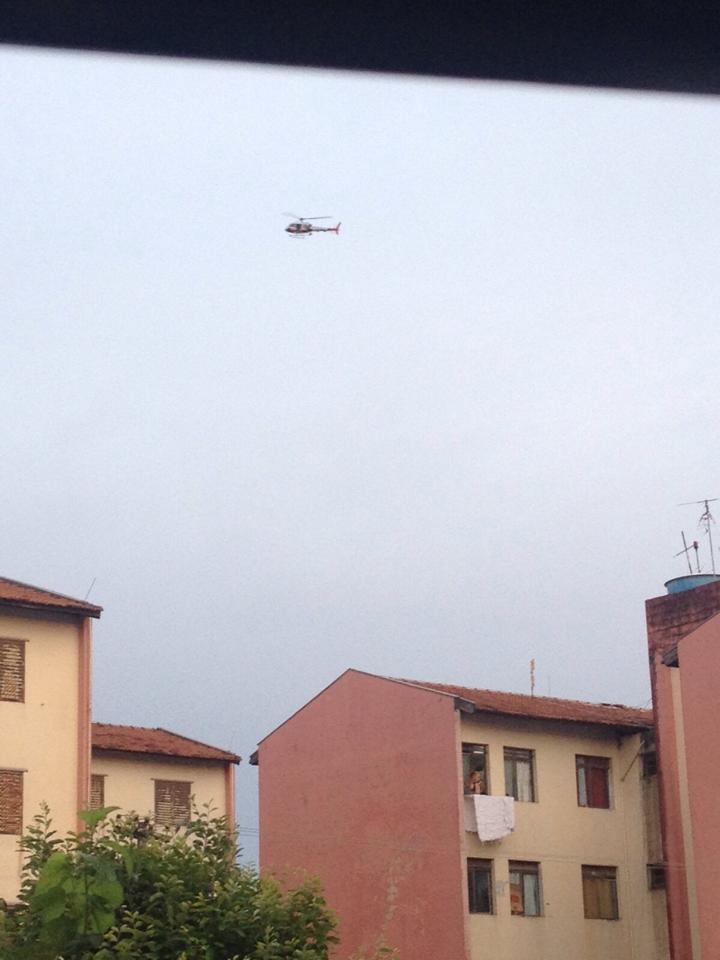 “Acordei com o helicóptero da PM voando muito baixo e com a luz bem forte. Pessoal daqui comentou que 4h30 da manhã os policiais já estavam andando pelos prédios. Bateram na porta de várias pessoas”, relata uma moradora.