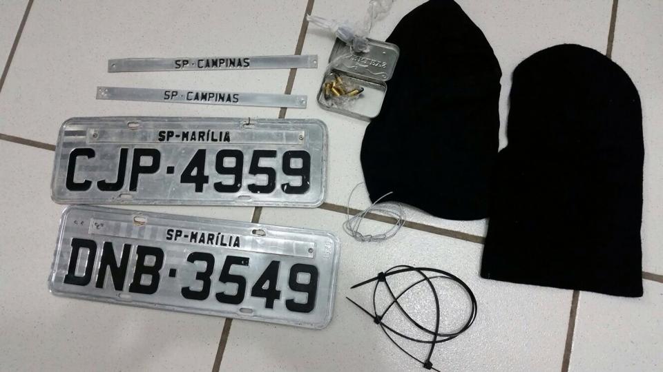 Placas, munição e capuz apreendidos (Foto: Divulgação/Whatsapp)