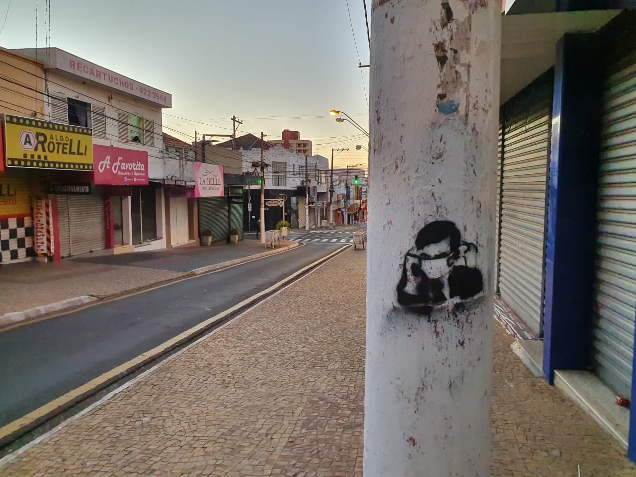 Desenho ironiza presidente Bolsonaro no Centro de Marília; comércio no entanto, está fechado por determinação de Doria (Foto: Leonardo Moreno/Marília Notícia)