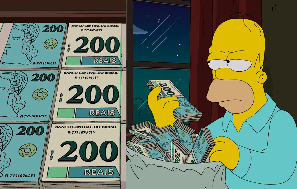 A série Os Simpsons tem talento para prever o futuro. A animação adivinhou a nova cédula de R$ 200 aprovada pelo Conselho Monetário Nacional e anunciada pelo Banco Central nesta quarta-feira, 29. A cena é exibida durante o 16º episódio da 25ª temporada, que foi ao ar em 2014. Em You Don’t Have to Live Like a Referee (Você Não Precisa Viver como um Árbitro), o personagem Homer se torna árbitro da Copa do Mundo e passa por testes de suborno no Brasil. Em um deles, oferecem ao pai da família Simpson uma pasta cheia de notas de R$ 200, mas ele se recusa a pegar a grana.