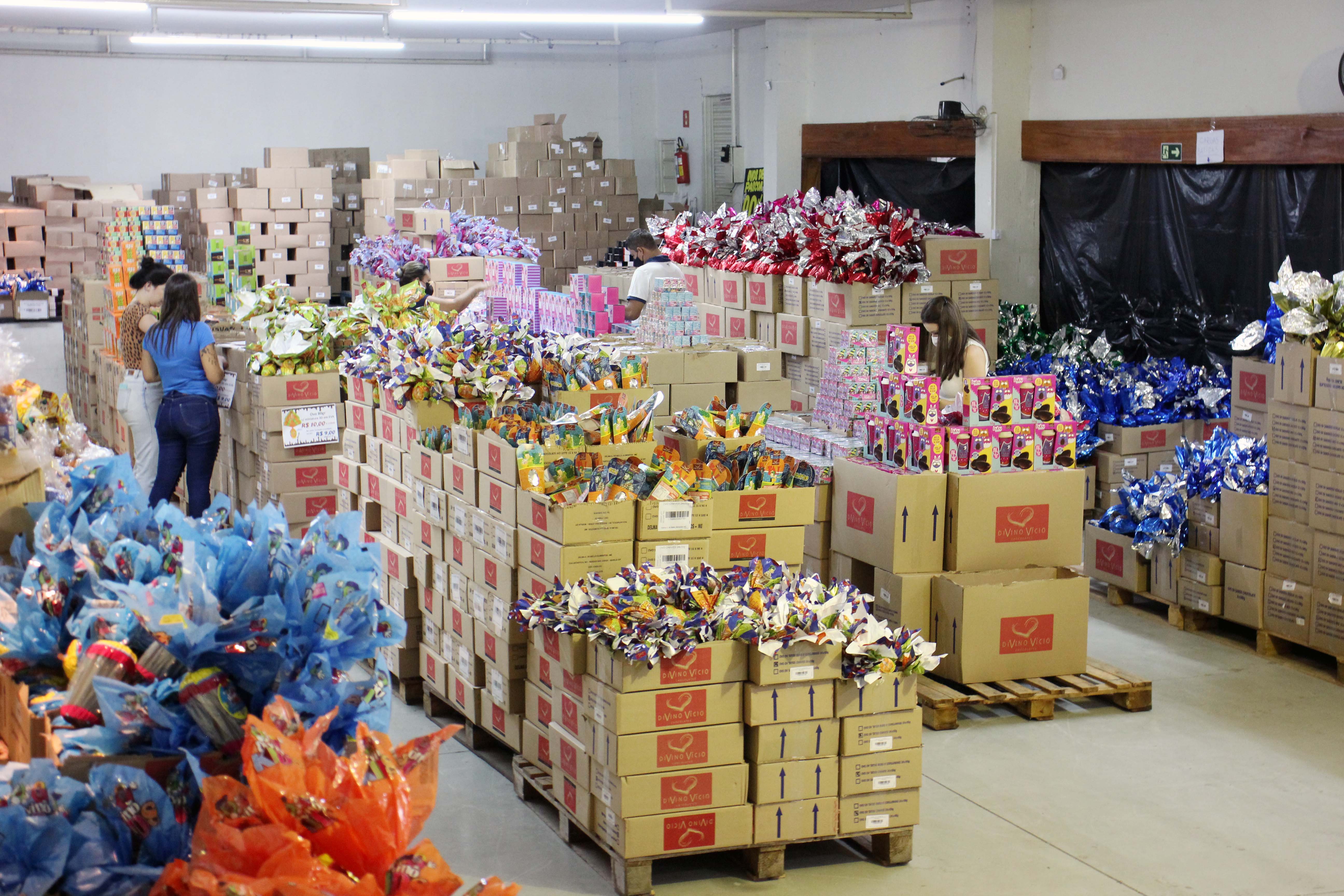 São cerca de 50 diferentes produtos, de ovos que vão de 10g a 300g, com temática infantil ou adulta, com preços até 70% mais baratos do que o valor comercializado pela fábrica normalmente.