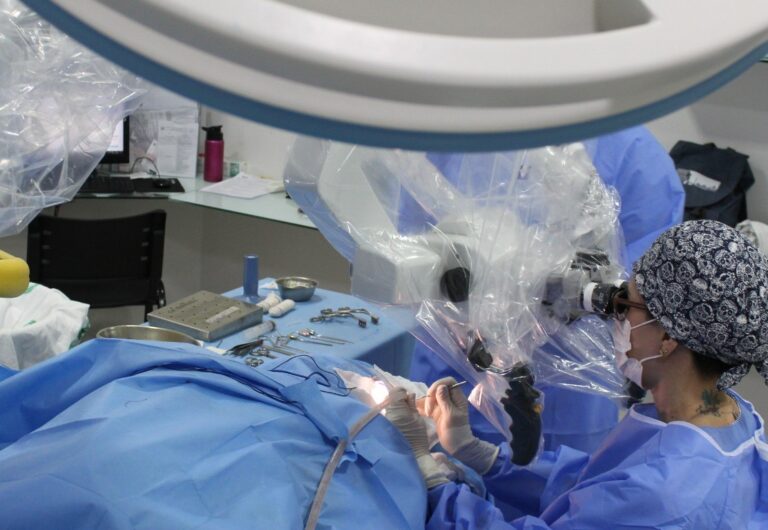 A especialista também destacou a utilização de um microscópio cirúrgico adquirido recentemente pelo hospital, equipamento que amplia a visualização das estruturas do ouvido durante procedimentos delicados. “O microscópio cirúrgico oferece uma visualização ampliada das estruturas, o que contribui para mais segurança e melhores resultados nas cirurgias otológicas”, explicou.