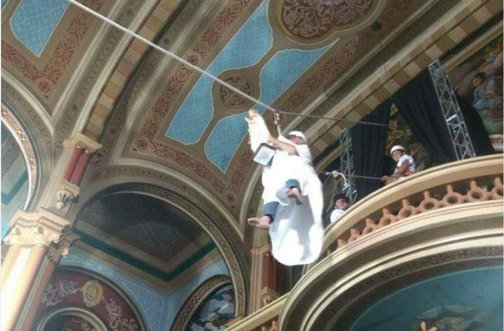 A missa de 13 de novembro celebrada pelo monsenhor Augusto Alves Ferreira, de Espírito Santo do Pinhal, no interior paulista, foi diferente das outras. A principal novidade não foi no sermão, mas na aparição do padre, de 70 anos: ele entrou na igreja pendurado por uma corda e percorreu 30 metros até o altar Após imagens da aventura circularem nas redes sociais, Ferreira já se tornou o “padre da tirolesa”.