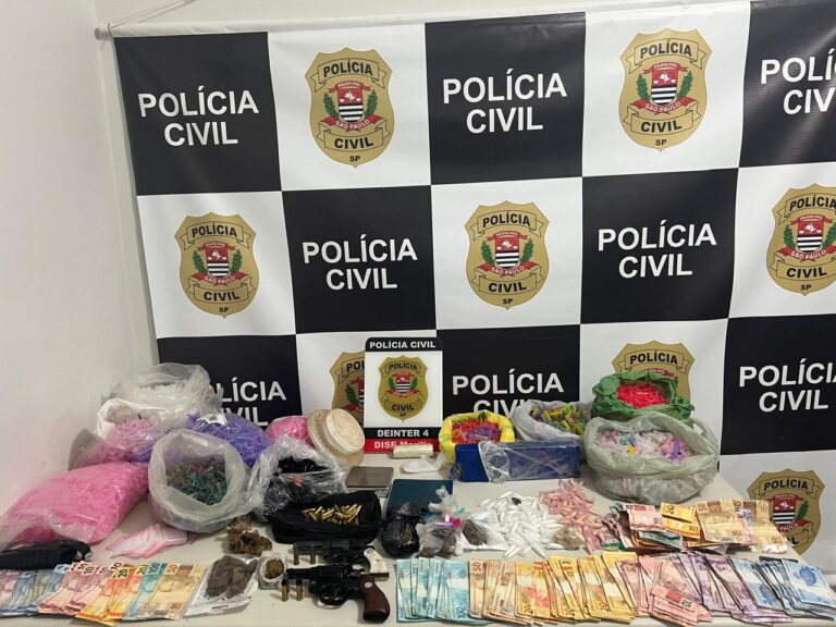 Drogas, dinheiro e armas foram apreendidas pelos policiais na zona norte de Marília (Foto: Divulgação/Polícia Civil)