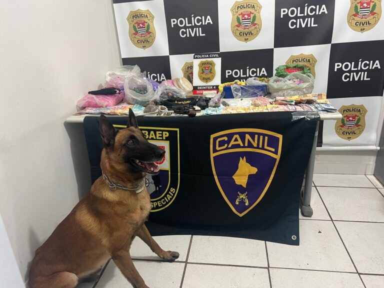 Já no quarto do pai, a atuação do cão farejador foi essencial. O animal indicou algo suspeito no forro do cômodo e, após a retirada de uma tábua, os agentes encontraram grande quantidade de entorpecentes, com um tijolo e duas porções grandes de maconha, 65 porções de crack, 60 de cocaína, além de mais cocaína e crack a granel. Também foram apreendidos diversos microtubos plásticos, sacos para embalo e uma balança de precisão.