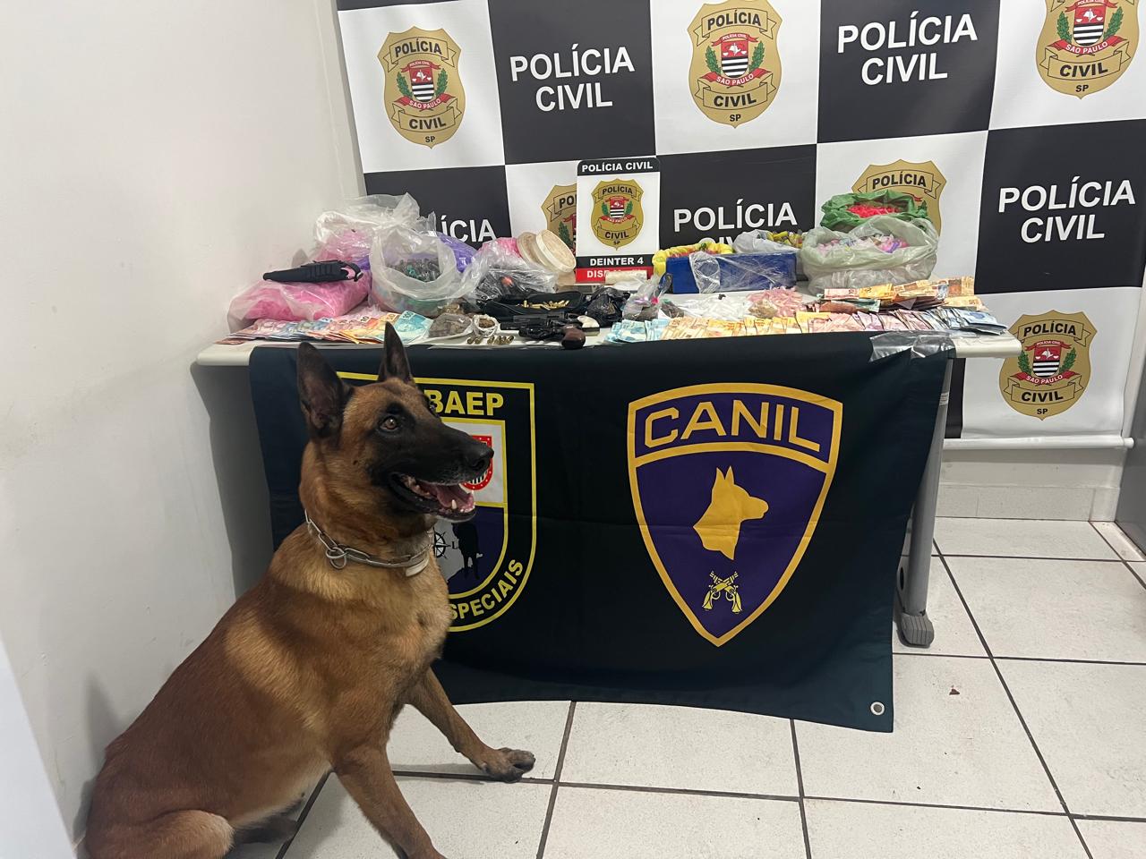 Ação da Dise contou com o apoio do Canil do Baep (Foto: Divulgação/Polícia Civil)