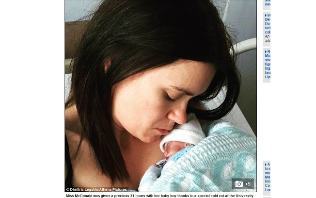 “Eu pude conhecer meu pequeno garoto nestas poucas horas. Pude beijá-lo, abraçá-lo e até mesmo conhecer o cheiro dele. Aquele berço refrigerado me concedeu memórias preciosas que eu não teria de outra maneira”. As informações são do jornal britânico Daily Mail.