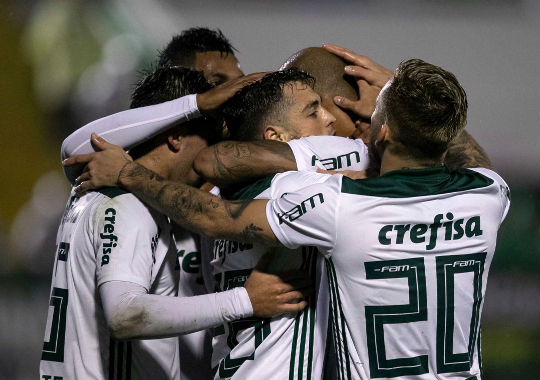 Jogadores do Palmeiras comemoram gol em partida contra a Chapecoense. (Foto: Divulgação)