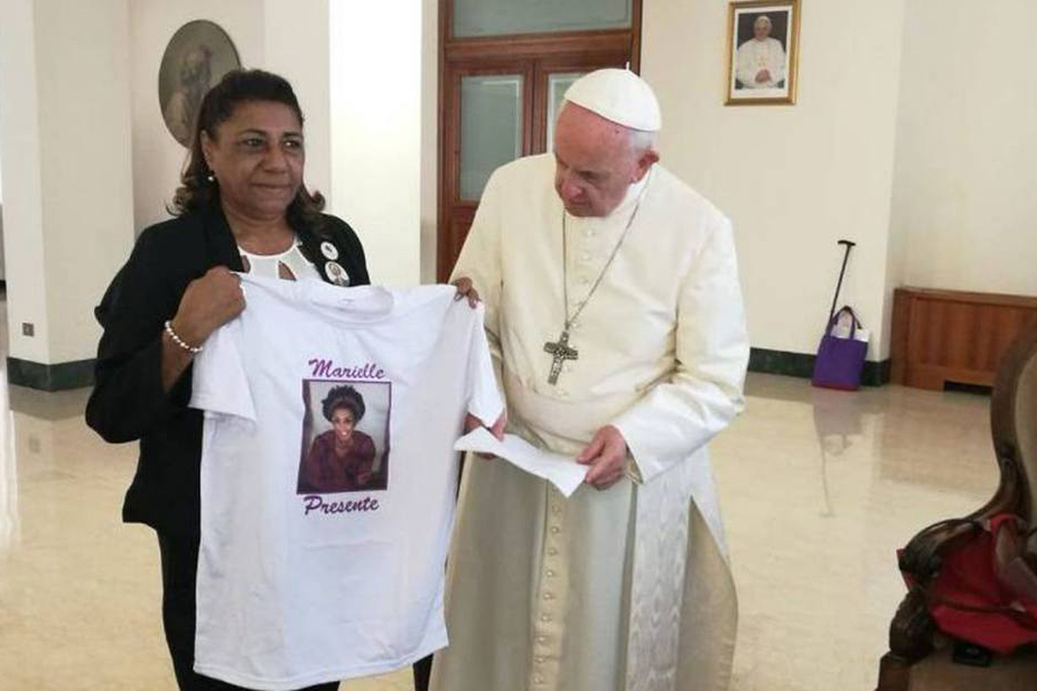 O Papa Francisco recebeu na quinta-feira, 2, no Vaticano, Marinette Silva, mãe da ativista brasileira Marielle Franco, assassinada no Rio em 14 de março. De acordo com a família, não foi o primeiro contato entre os dois. Dias após a morte, o pontífice teria ligado para Marinette, após receber uma carta da filha da vereadora do PSOL, Luyara. O contato teria sido intermediado, conforme a mídia italiana, pelo ativista argentino Gustavo Vera e pelo jornalista argentino Lucas Schaerer, da ONG Alameda.