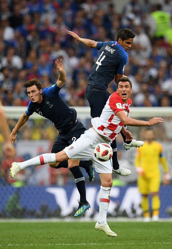 Para abrir o placar, a França usou o mesmo expediente que havia garantido sua classificação à final com a vitória suada sobre a Bélgica: a bola parda. Após cobrança de falta, em um lance polêmico aos 18 minutos, o artilheiro Mandzukic cabeceou para trás e fez gol contra. O mesmo atacante que garantiu a vaga da Croácia na final, marcando diante da Inglaterra na prorrogação, deixou a França à frente no placar.