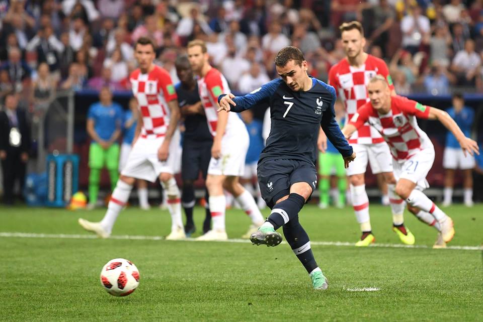 Grande novidade do Mundial, o VAR (árbitro assistente de vídeo) teve interferência na final da Copa no segundo gol da França. Diante das reclamações dos franceses de toque de Perisic após cobrança de escanteio, o árbitro argentino Nestor Pitana ouviu as recomendações dos assistentes de vídeo e foi à beira do campo para rever o lance. Após muita indecisão, em que voltou ao vídeo por duas vezes, o argentino assinalou o pênalti. Na cobrança, Griezmann deslocou o goleiro Subasic e colocou a França em vantagem novamente. Foi seu quatro gol no Mundial. Foi o primeiro pênalti durante o tempo normal em uma final de Copa desde 2006.