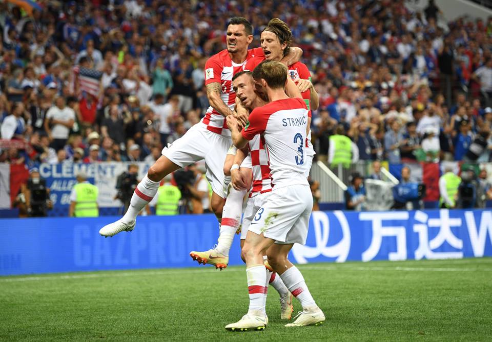 A Croácia mostrou boa movimentação e continuou melhor no jogo. Mesmo depois de três prorrogações nas fases anteriores, o time mostrava um jogo dinâmico com boa variação de jogadas pelos lados do campo. Rakitic, melhor do time no primeiro tempo, apostava nos lançamentos para Perisic. Após cobrança de escanteio, o time croata conseguiu o empate aos 27 minutos. Perisic driblou e chutou firme de perna esquerda. Foi seu terceiro gol em sete jogos.