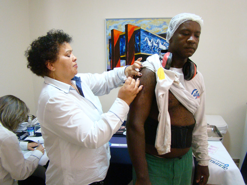 Funcionário recebe vacina contra dengue