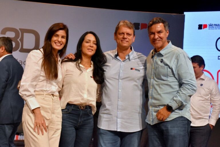 Dani Alonso e Capitão Augusto com o governador Tarcísio de Freitas (Foto: Divulgação)