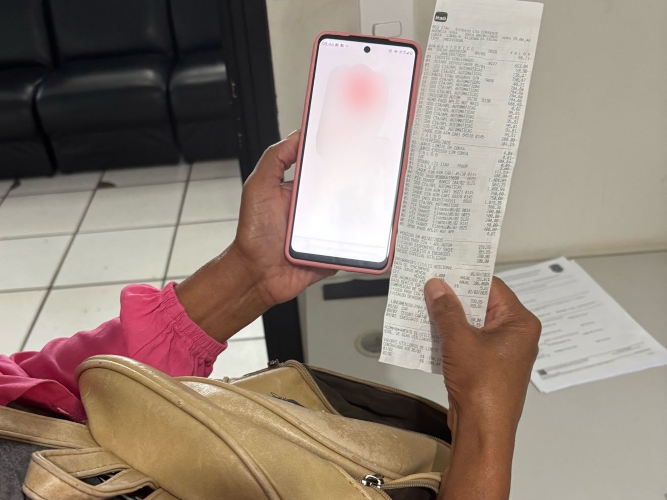 A idosa contou que, antes do golpe, tinha cerca de R$ 900 na conta, economizados ao longo de meses com parte do benefício. Após as movimentações indevidas, o saldo ficou negativo e ela afirma que agora ainda teme a cobrança de juros.