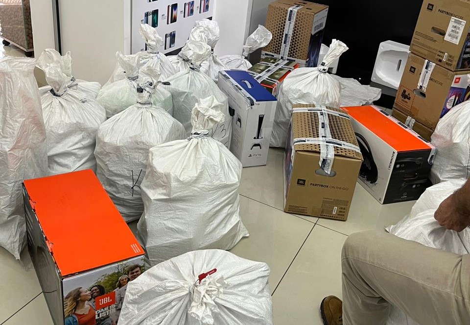 De acordo com a PF, foram apreendidos grande quantidade de produtos sem documentação fiscal, dentre eles telefones celulares em diversas marcas, sistemas de som, bebidas e outros itens de importação ilegal a partir das fronteiras terrestres do Brasil com países vizinhos.