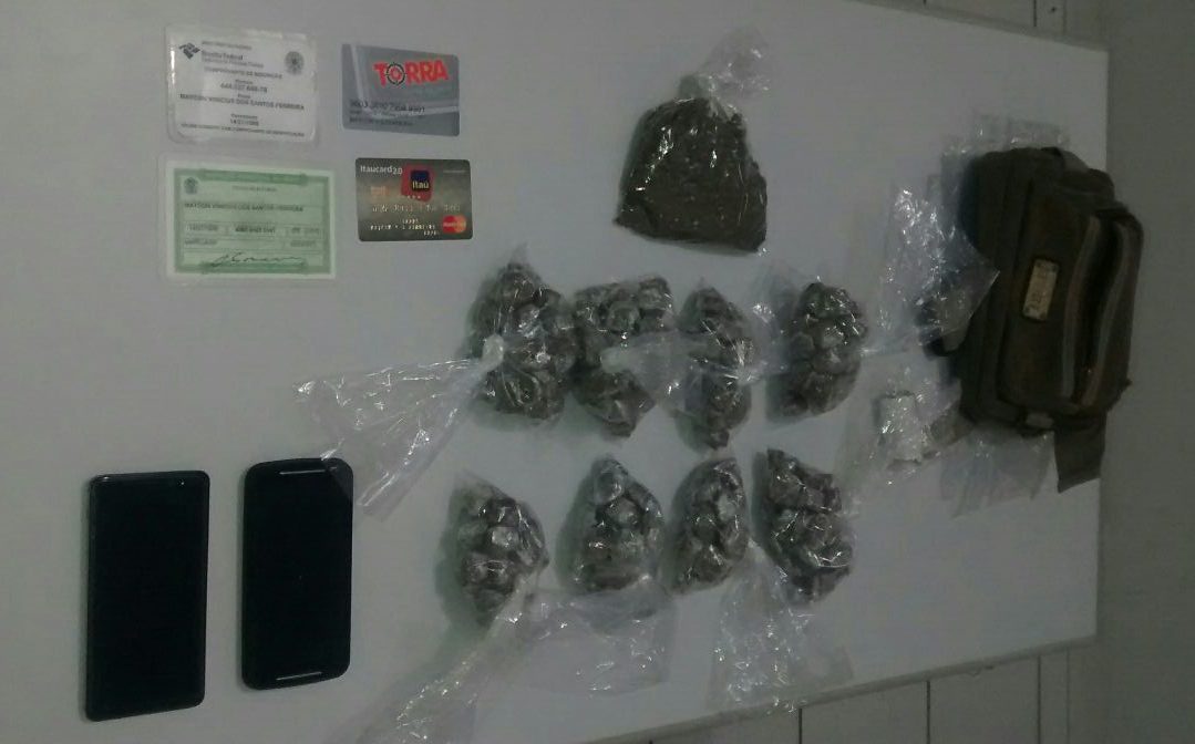 Os policiais seguiram por um corredor até uma casa nos fundos do terreno e encontraram Reis com quase 600 gramas de maconha divididas em 198 porções.