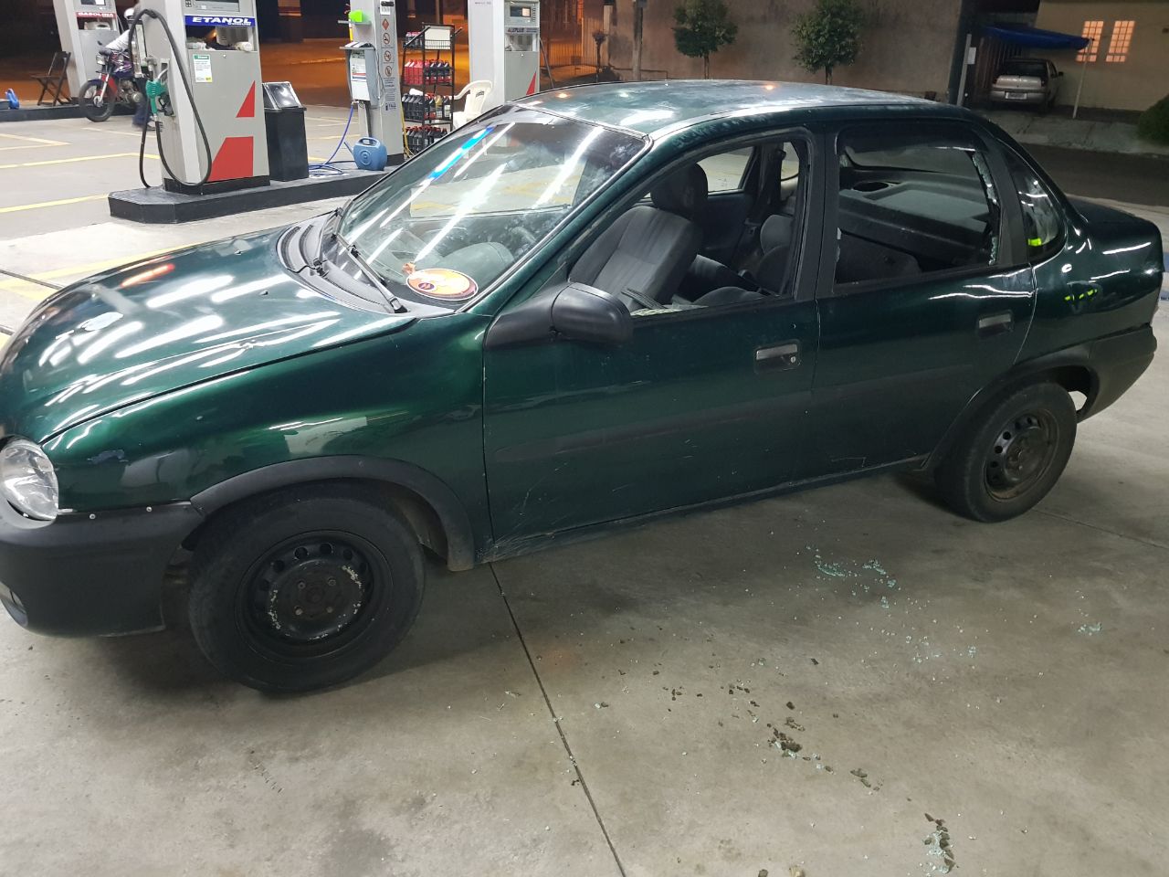 Foi requisitada perícia e foram encontradas marcas de tiros na porta do motorista, capô, para-brisa e vidro da porta traseira. O veículo estava com documentos vencidos e foi apreendido.