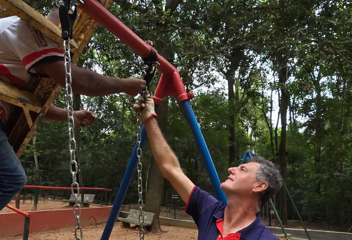 Os balanços do parque passaram por uma reestruturação e receberam um novo sistema de fixação, com peças exclusivas e rolamentos que garantem maior estabilidade e durabilidade. Antes da reforma, os equipamentos eram presos por parafusos que se desgastavam com o uso, o que exigia manutenção constante e apresentava risco de acidentes.