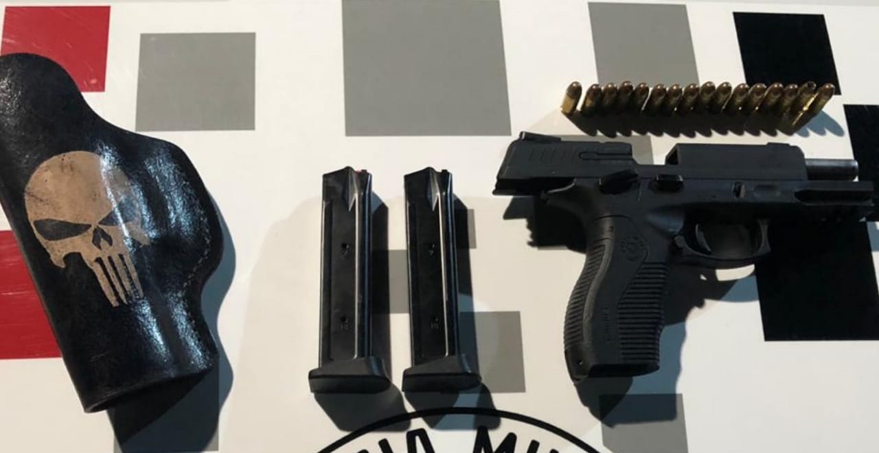 O veículo era alvo de denúncias em datas anteriores e por isso foi abordado. Com os ocupantes nada foi encontrado, porém no veículo havia uma arma calibre .380 com oito munições e mais um carregador também com oito munições.