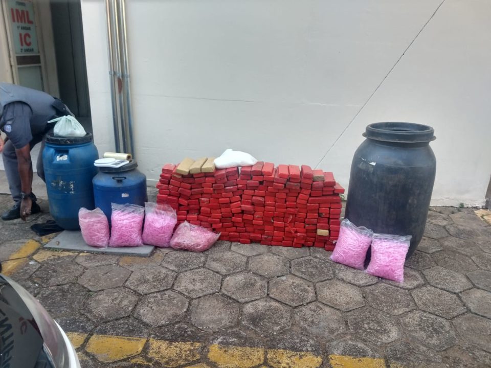 Em três tonéis havia maconha, cocaína, duas balanças de precisão e diversas embalagens plásticas.