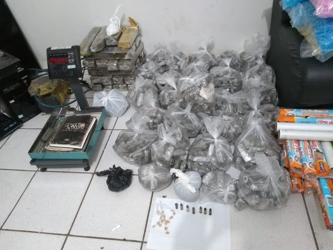 Os policiais foram até a residência onde a arma estaria escondida e ali sentiram um forte cheiro de maconha. Dentro do imóvel os militares descobriram um grande depósito de drogas.