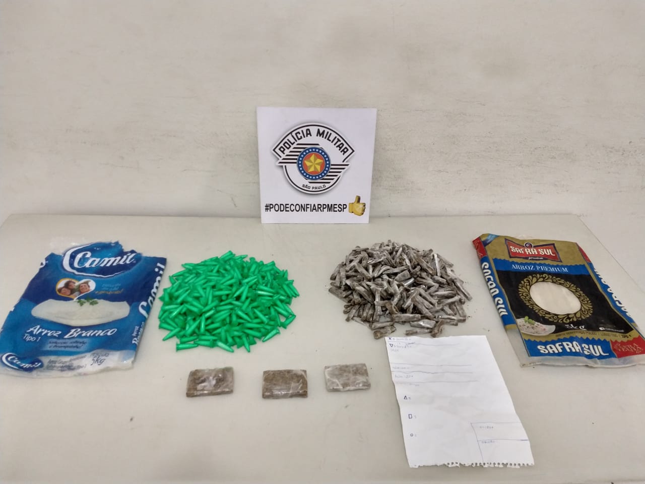 Segundo a Polícia Militar, uma equipe realizava patrulhamento ostensivo quando identificaram um homem com dois sacos plásticos carregados de entorpecentes na rua Salvador Salgueiro.