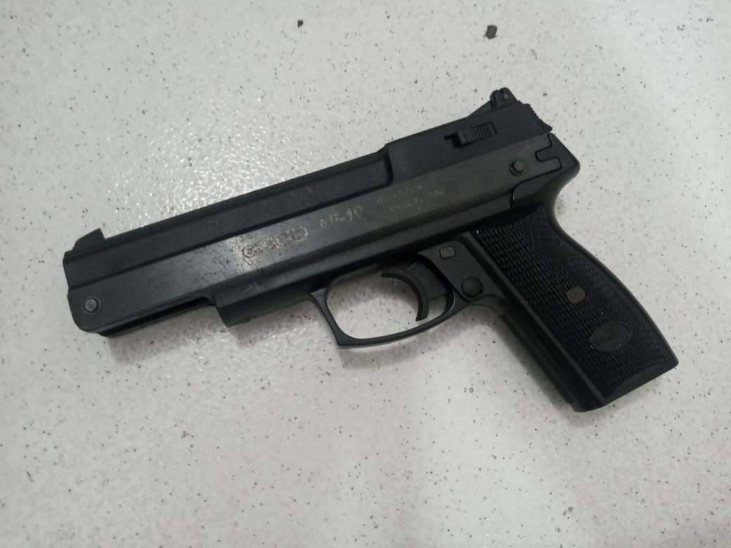 No veículo havia uma arma falsa e uma bolsa contendo duas porções de maconha, um cigarro da droga e um dichavador.