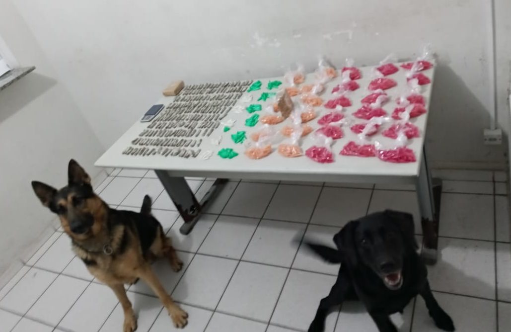 Os policiais se deslocaram até o endereço e com o apoio de cães de faro localizaram várias sacolas plásticas.