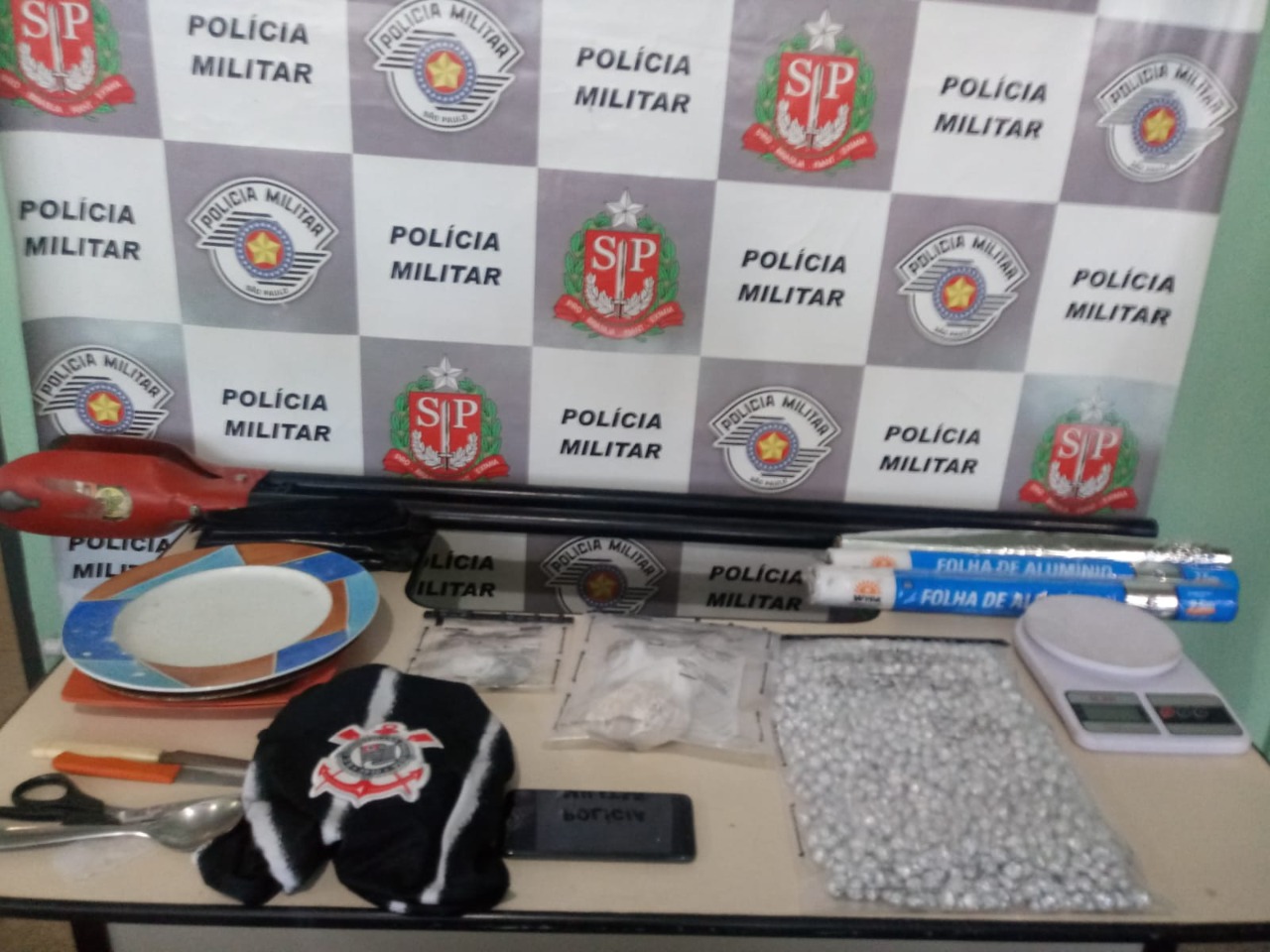 Drogas e objetos foram encaminhados à Delegacia, onde foi confeccionado auto de exibição e apreensão.