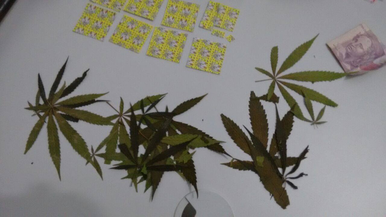 - Folhas de maconha e LSD apreendidos