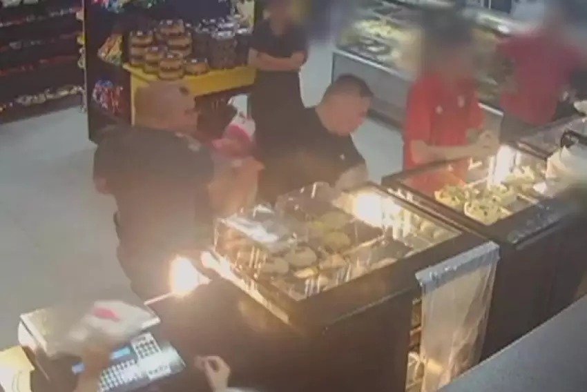 Pelas imagens, Kelvyn, que estava acompanhado por sua esposa e pela filha, uma bebê de oito meses, espera uma mulher ser atendida no balcão da padaria para ir conversar com uma funcionária. O PM aguardava ao lado. Pelo vídeo é possível perceber que Klevyn segurava duas sacolas em uma das mãos.