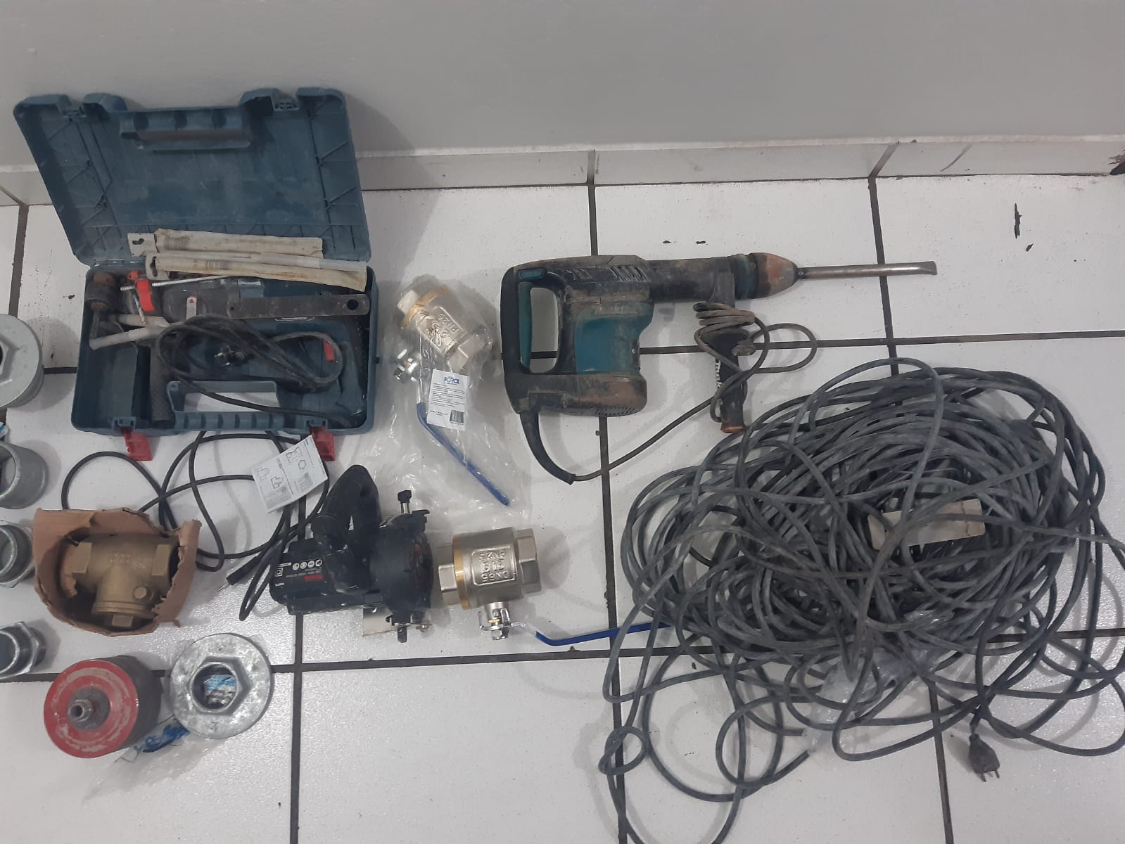 Dentro de um saco volumoso, que o suspeito carregava na cabeça, havia diversas máquinas, cerca de 30 metros fio, furadeira, martelete, serra mármore, registros grandes e novos, conexões hidráulicas e alguns acessórios de ferramentas. Segundo a PM, os objetos foram avaliados em R$ 10 mil.
