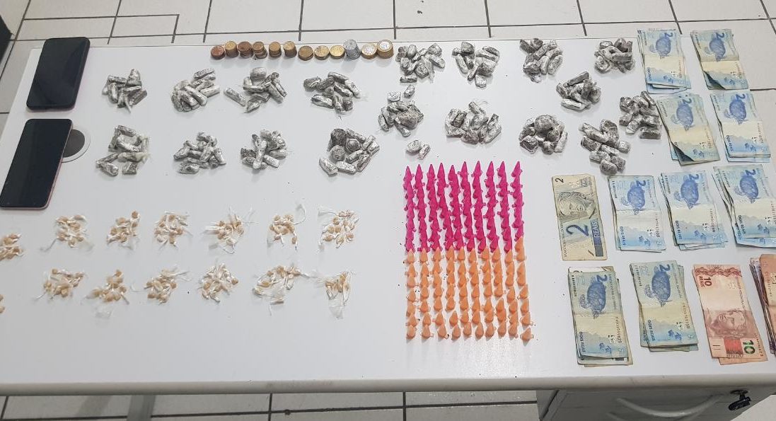 A mulher e um adolescente, de 14 anos, estavam vendendo entorpecentes, já os outros dois estariam fazendo a função de ‘aviãozinho’, ou seja, pegando a droga e entregando para os usuários.