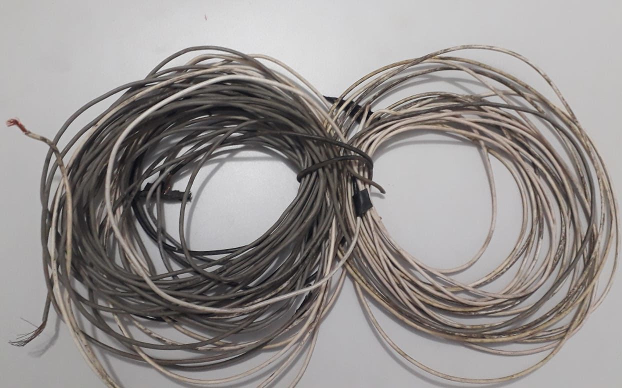Com as características do suspeito, a equipe foi até o local e fez a abordagem. Com ele, foram localizados 47 metros de fios elétricos. Indagado, informou que pegou a fiação do chão.