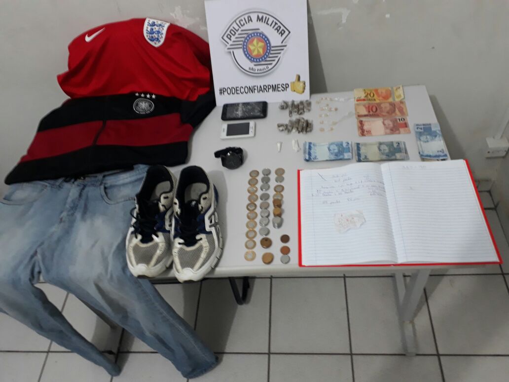 A Polícia Militar prendeu em flagrante André Luiz Vitorino, idade não divulgada, por tráfico de entorpecentes na Vila Barros, zona Norte de Marília, na manhã de quinta-feira (30). Ele também é apontado como autor de roubo contra lanchonete no último dia 9 de novembro.