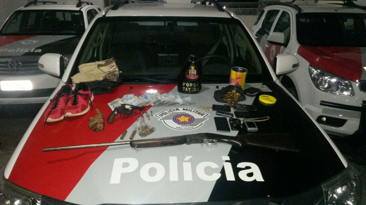No imóvel foram apreendidas duas armas de fogo (inclusive uma espingarda), diversas munições, grande quantidade de dinheiro e aparelhos celulares.