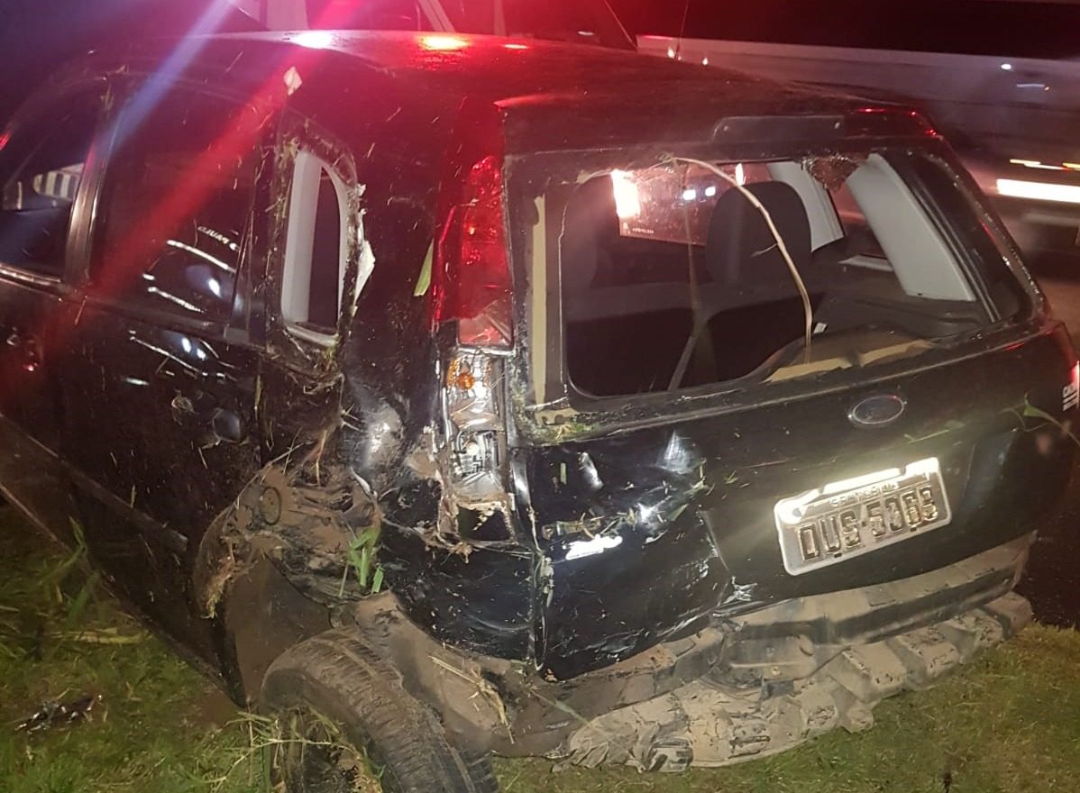 Os militares foram acionados até o local da colisão e encontraram um automóvel Ford Fiesta tombado no acostamento. No veículo estava o motorista, um empacotador de 24 anos, sua esposa de 28 anos e a enteada dele de seis anos.