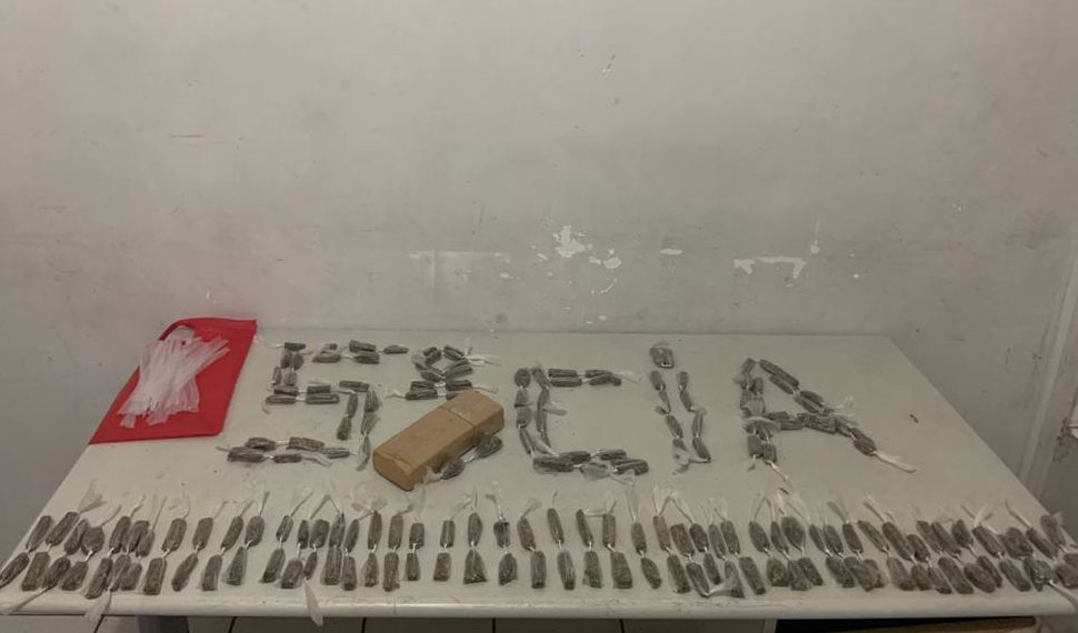 Na sacola pendurada havia 187 porções de maconha e um tijolo da mesma droga. Ao ser questionado, o indivíduo afirmou que as porções seriam entregues à adolescentes para a venda e o tijolo seria fracionado e embalado também para ser comercializado.