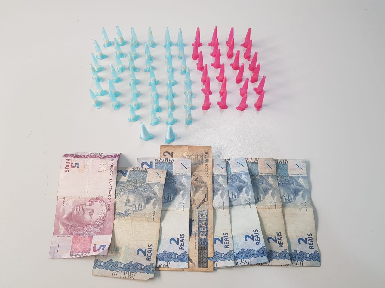 Ele foi abordado e identificado como ‘Fuck’. Com ele havia um sacola plástica com vários pinos de cocaína e crack, além de R$ 19.