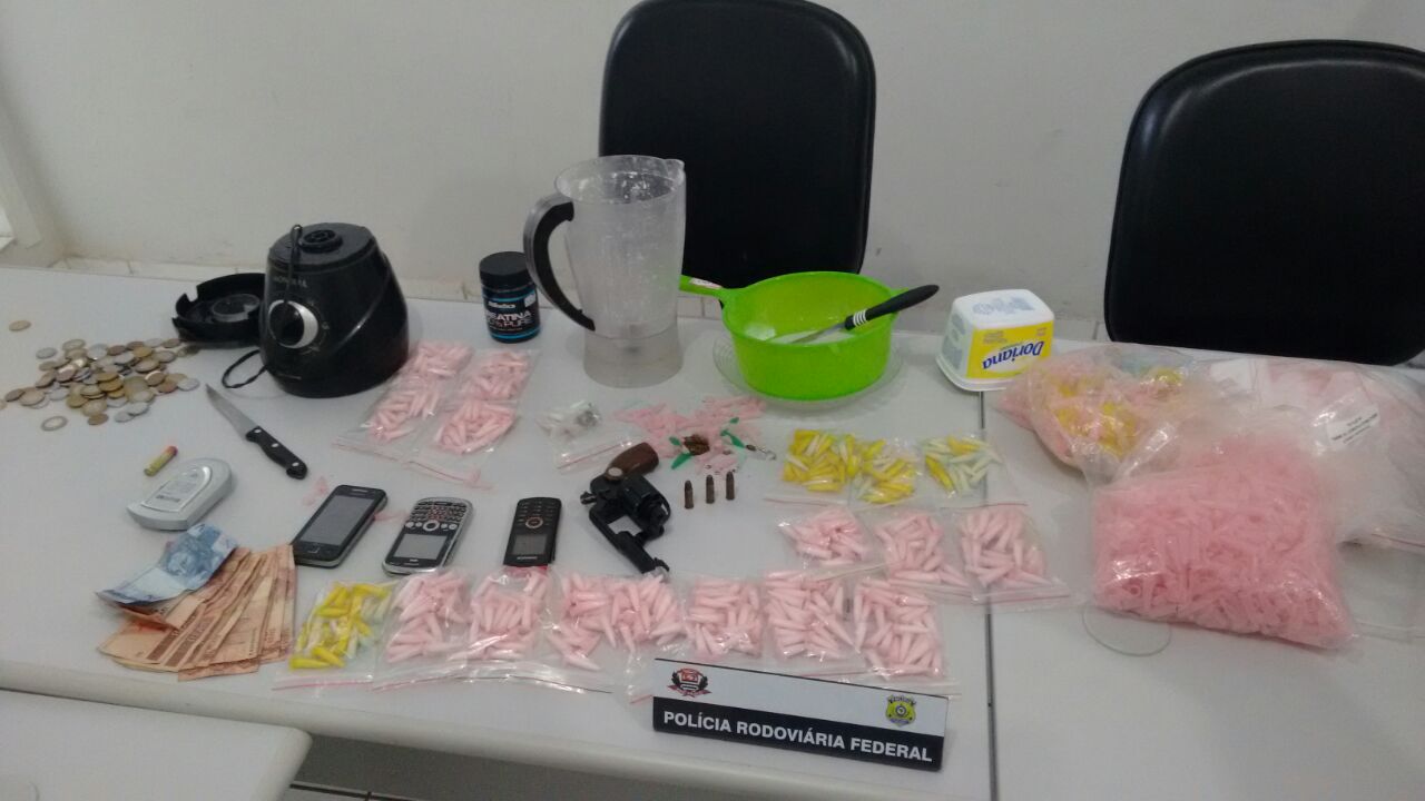 Materiais utilizados para misturar a droga com outras substâncias, além de centenas de pinos vazios, que acondicionariam mais entorpecentes, também foram apreendidos pela PM.