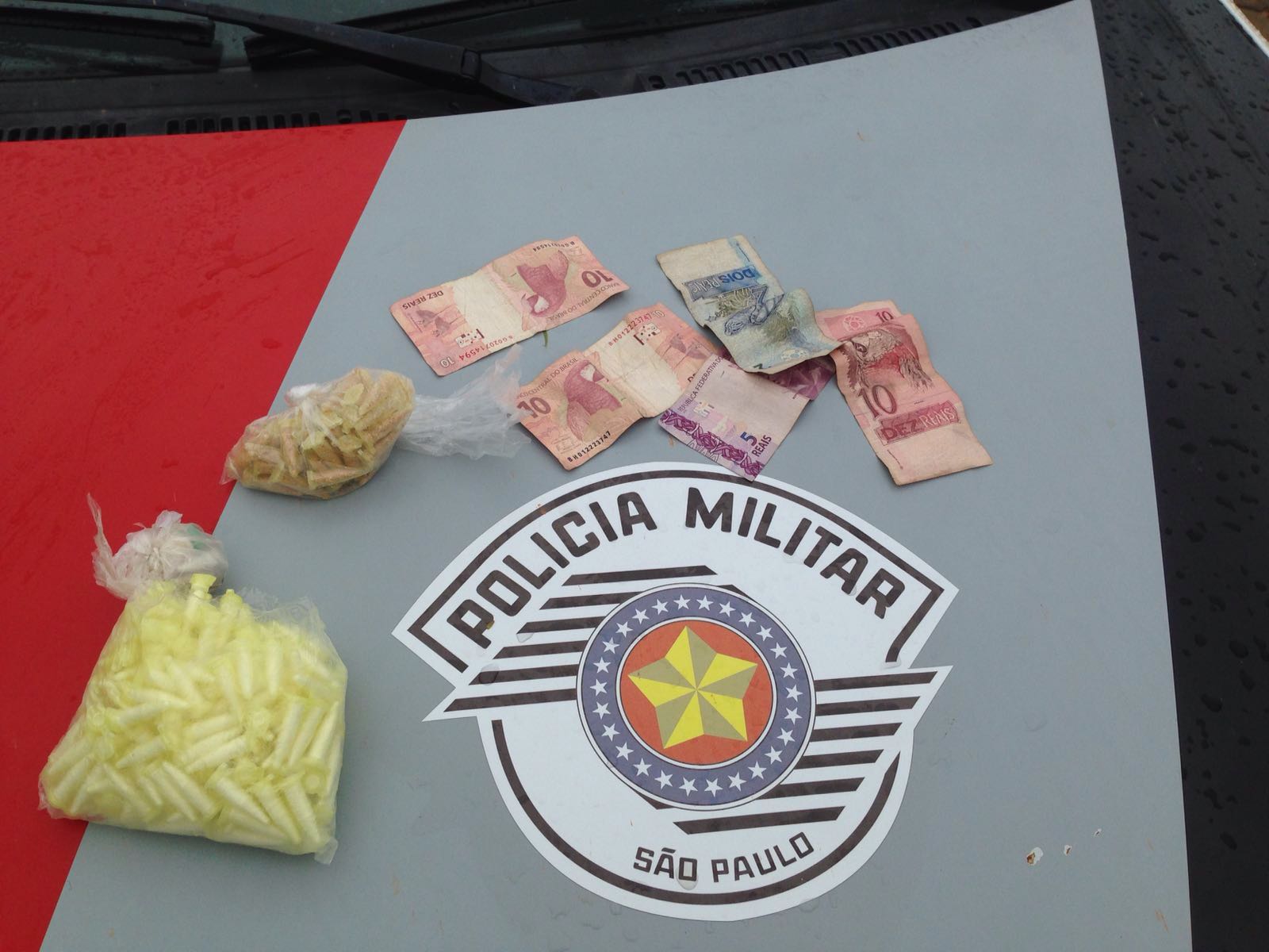 Um cerco foi realizado nas ruas próximas e o suspeito acabou detido com mais de 200 pinos com cocaína e 70 com crack.