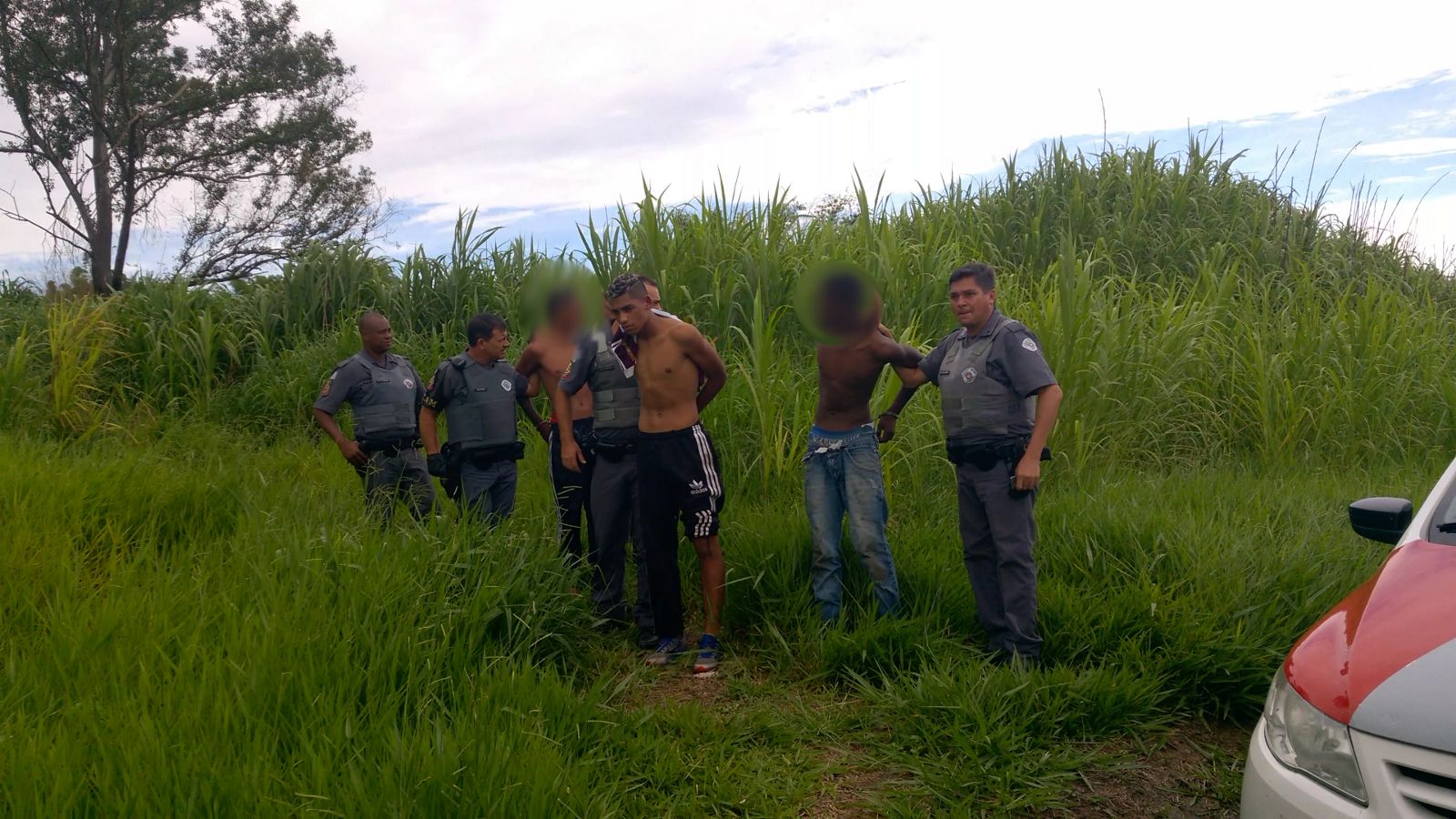 Uma vítima conseguiu escapar e pelo telefone acionou um colega, que ligou imediatamente para o 190. Os bandidos perceberam que os militares estavam chegando e fugiram. Após grande cerco e intensa perseguição com diversas viaturas, um dos criminosos foi detido já no meio da mata.