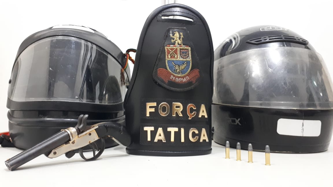 Em revista pessoal, uma arma de fogo, garrucha calibre 22, foi encontrada na cintura de Andrew Ferreira, que estava na garupa da moto. O motociclista, que teve somente as iniciais A.V.B. divulgadas, não tinha nada de ilícito.