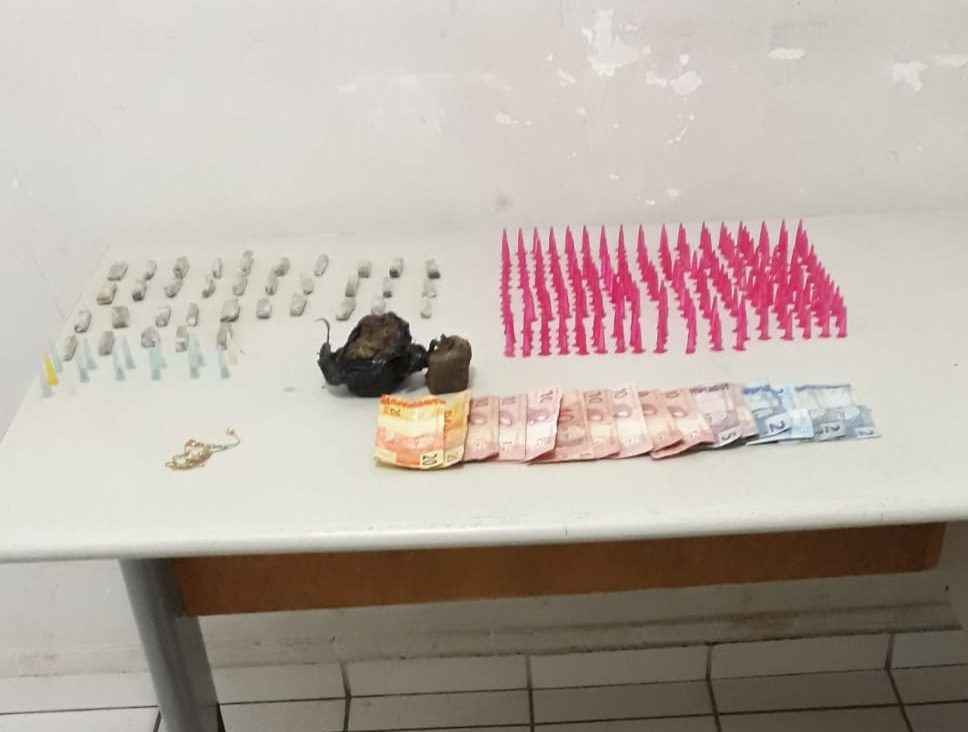 Em ato contínuo, os militares observaram um outro rapaz saindo de um barraco com um saco preto nas mãos. O homem foi acompanhado, dispensou o saco e acabou abordado. Com ele havia 14 pinos com crack, 12 pinos com cocaína e R$ 38.