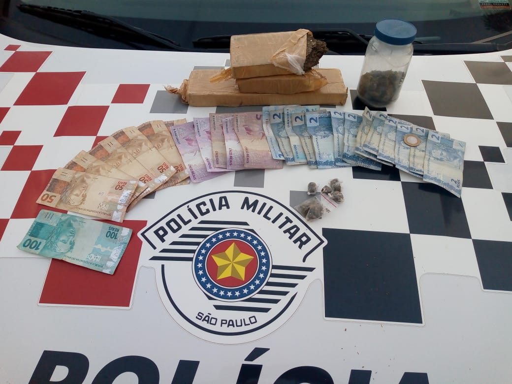 A dupla foi abordada em dentro da embalagem amassada havia cinco porções de maconha, que totalizaram 20 gramas, prontas para a venda. Com um dos abordados foram encontrados R$ 80.